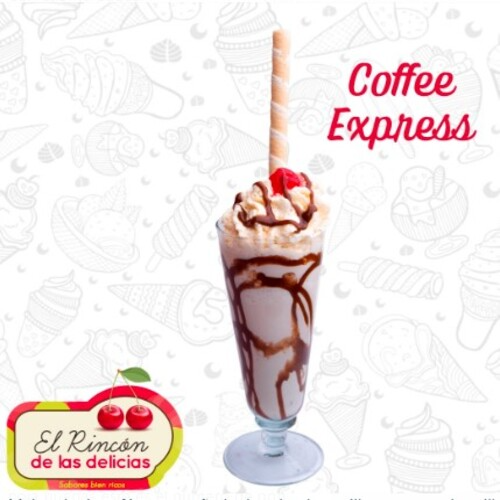 Malteada de café, salsa, barquillo, cereza y chantilly.