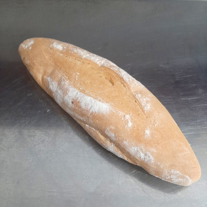 Delicioso pan en forma alargada y fina, corteza dorada y el interior esponjoso