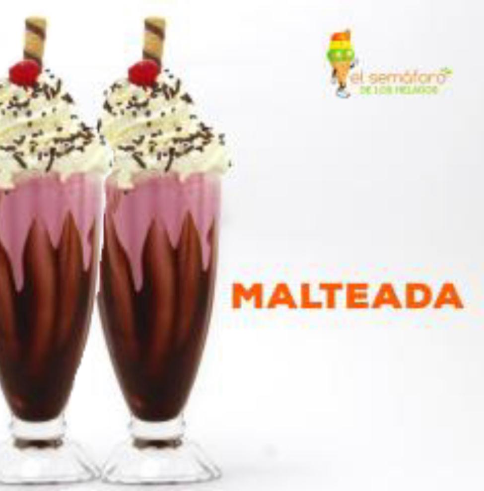 Dos Malteadas de Un sabor de helado, Chantilly, cereza, un sabor de salsa, lluvia de chocolate y barquillo piazza.
