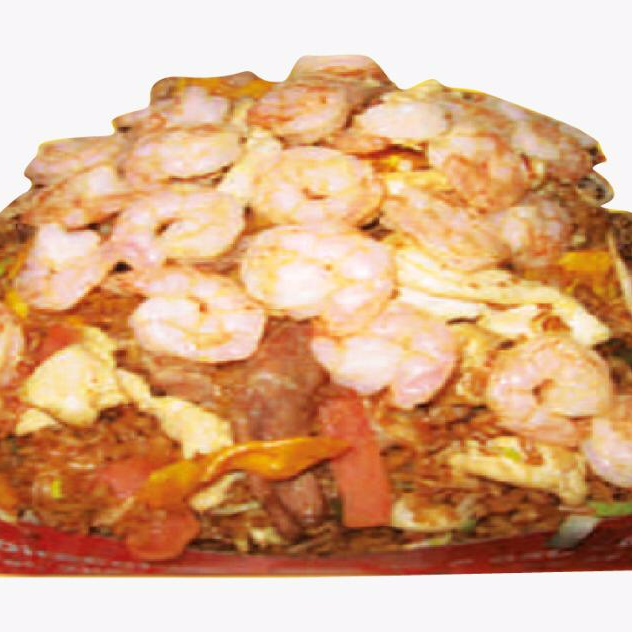 arroz de la casa con más camarón, pollo, cerdo y jamón.