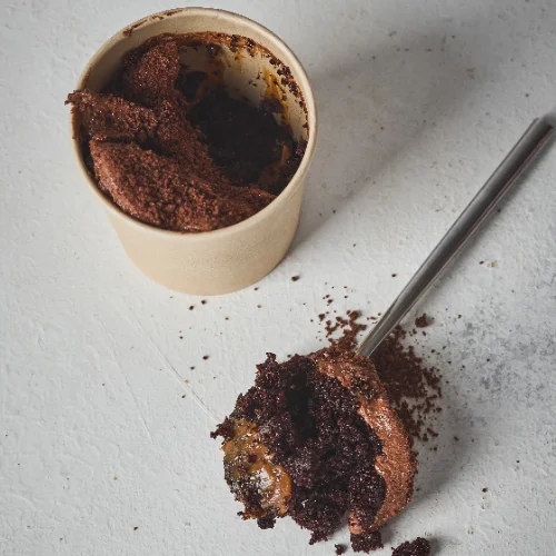 Cuchareable de nuestra famosa torta de chocolate, capas de bizcocho húmedo de chocolate, arequipe y crocante de cocoa. ¡Acompañado de cuchara comestible!