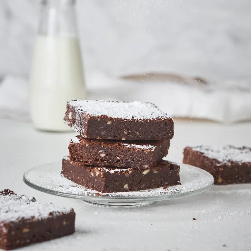 Brownie suave de cocoa. Cubierto con toques de azúcar