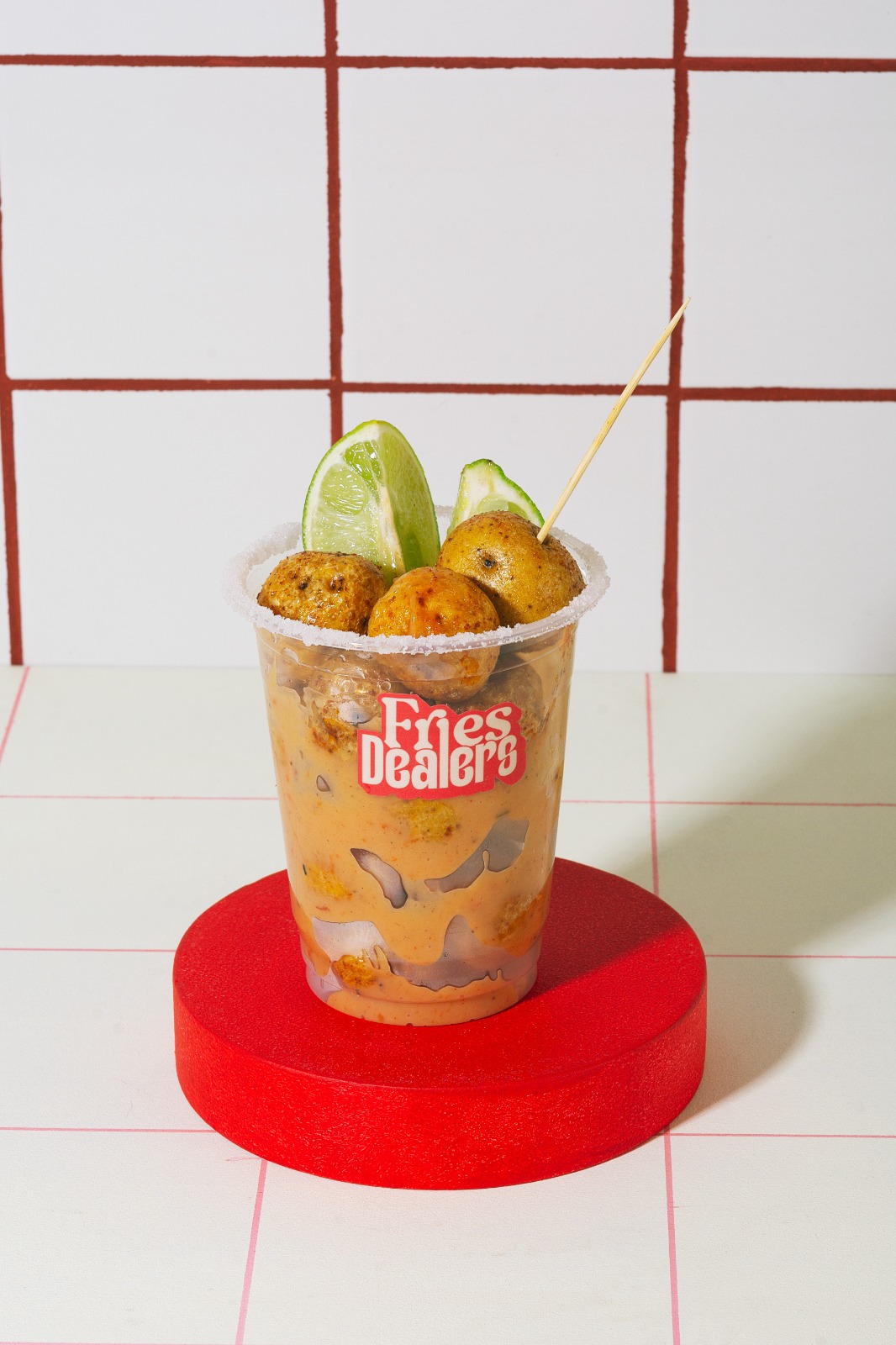 Papas a la francesas 250 g con Tajín, queso rallado, frijoles con chili y carne, mazorca, pico de gallo, guacamole, sour cream, salsa mayochipotle y ajo.