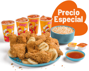 2 Presas apanadas, papas a la francesa mediana (60 g), sopa de verduras, ajiaquillo, consomé o sancochito (350 g) y gaseosa (325 ml)