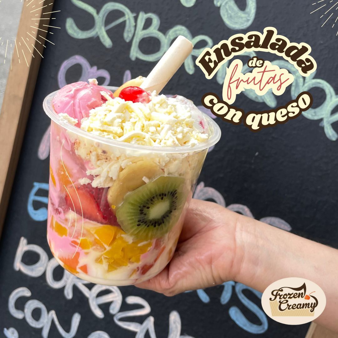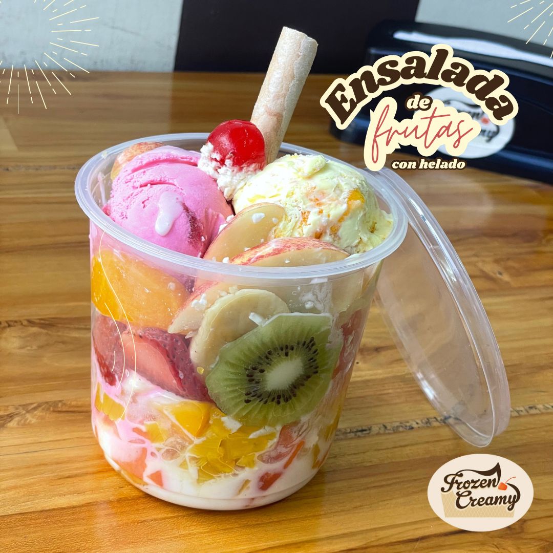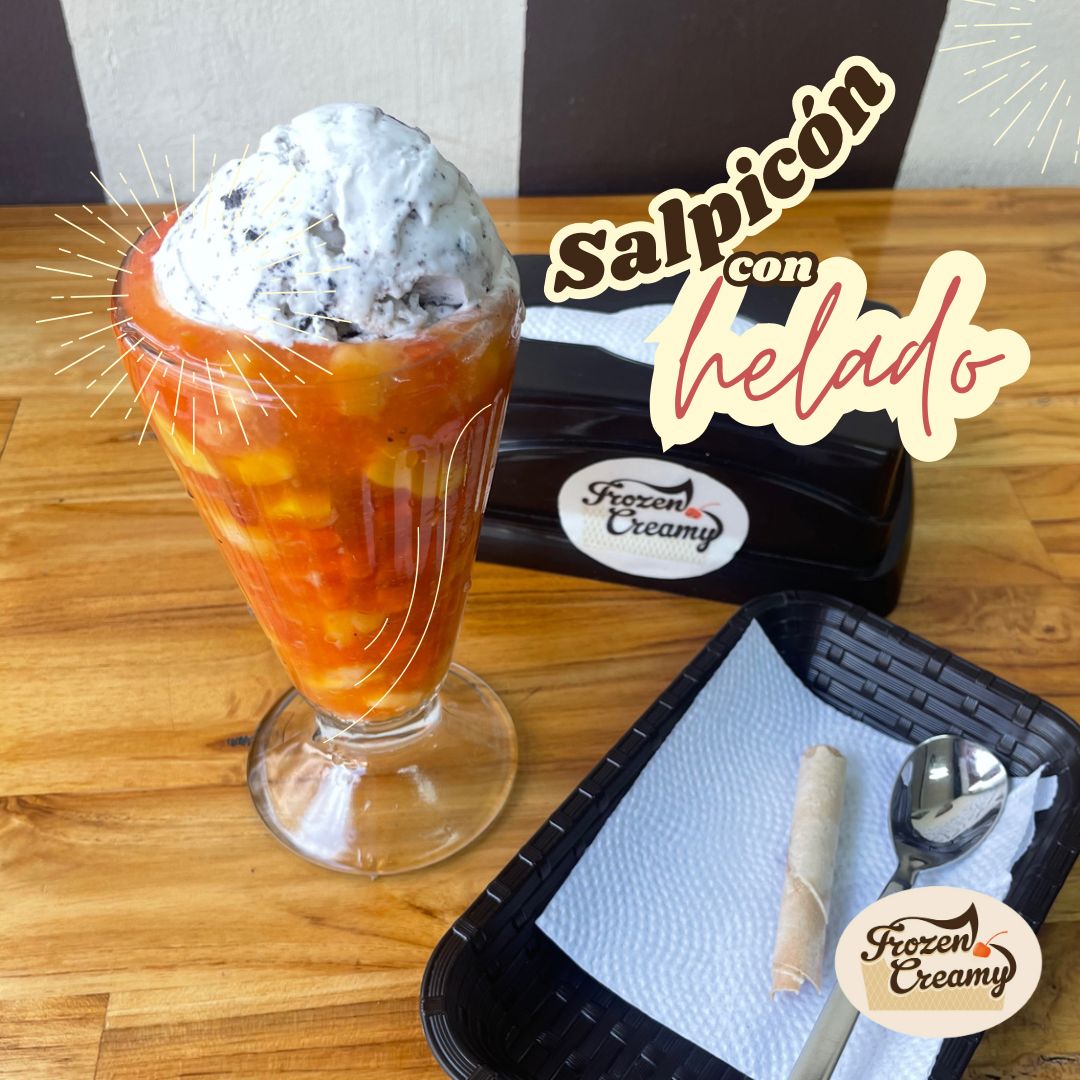 Salpicón, 1 sabor de helado, queso, chantilly, barquillo, salsa (leche condensada).