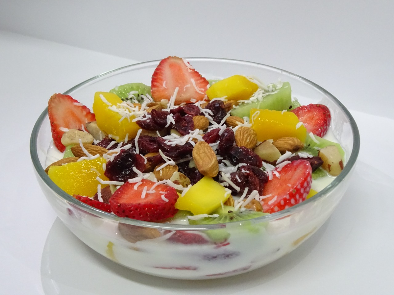 Ármala como tu quieras: escoge 3 frutas y 3 frutos secos, tu base será kumis o yogurt.