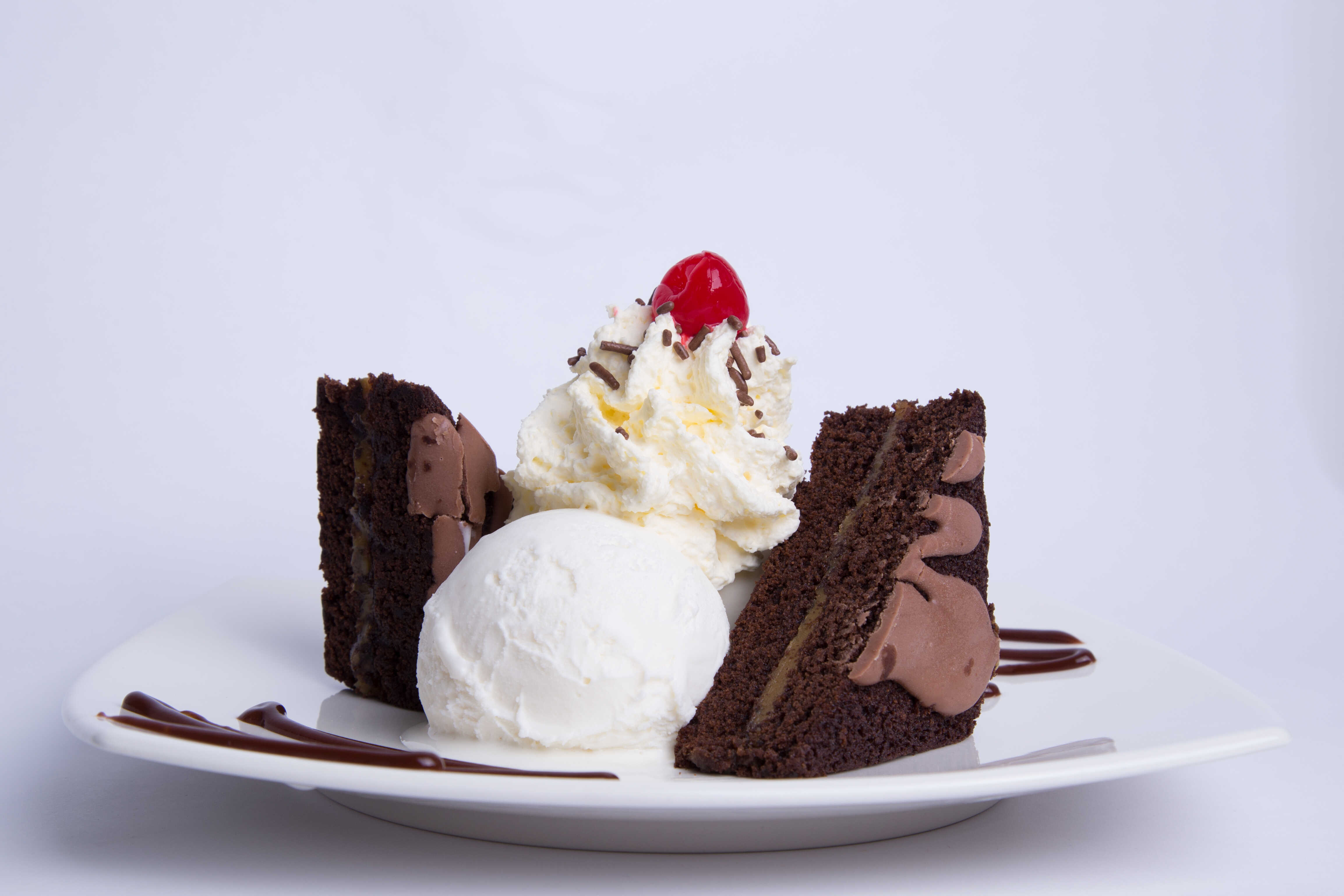 Suave torta con una equilibrada mezcla de dos bolas de helado, fresas, salsa de la casa (mora) y un toque de deliciosa crema chantilly.
