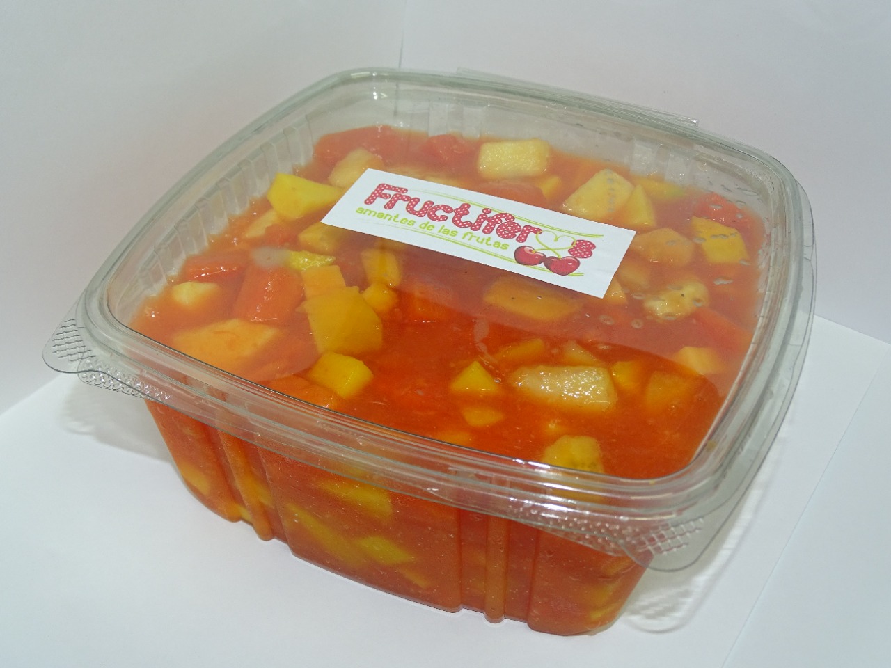 Deliciosa mezcla de frutas (banano, papaya, melón, kiwi, fresa, uvas, mango, manzana), acompañada de queso, 2 bolas de helado, lechera, crema de leche y un toque de crema chantillí.