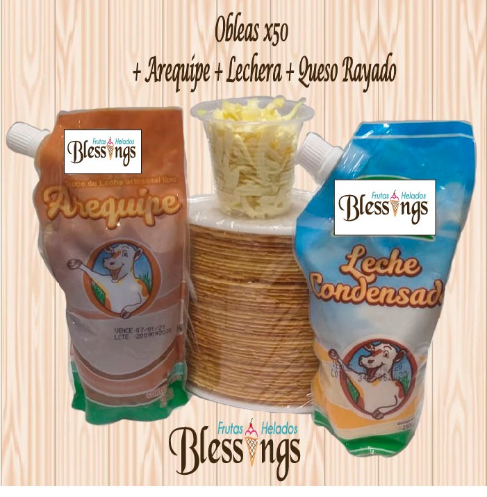 50 Obleas + 1 Arequipe 250g + 1 Lechera 250g + Adición de Queso.
