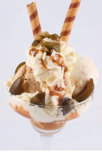Ensalada 24onz 2 sabores de helado a elegir, queso, salsa de la casa y barquillo,