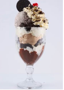 Copa con 2 sabores de helado a elegir, acompañados de galleta Oreo, salsa de la casa y chantilly.