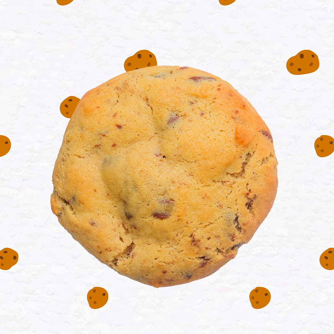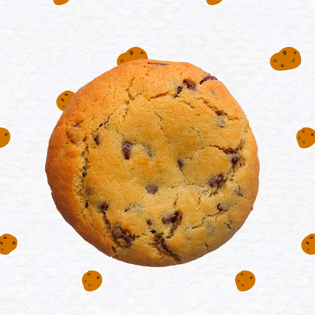 Galleta clásica y reconfortante con abundantes chispas de chocolate al 47% de cacao con bordes dorados y un centro cremoso.