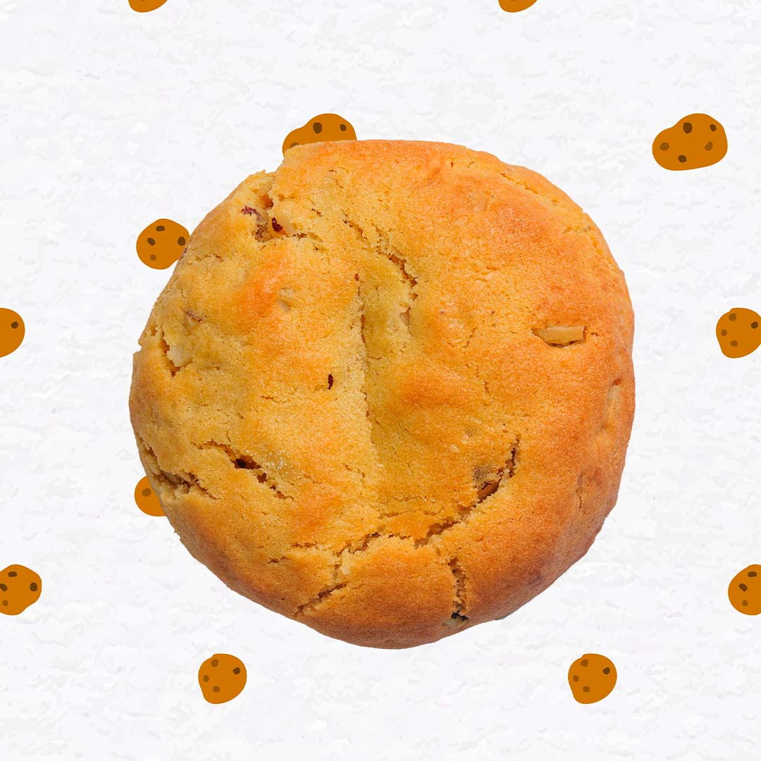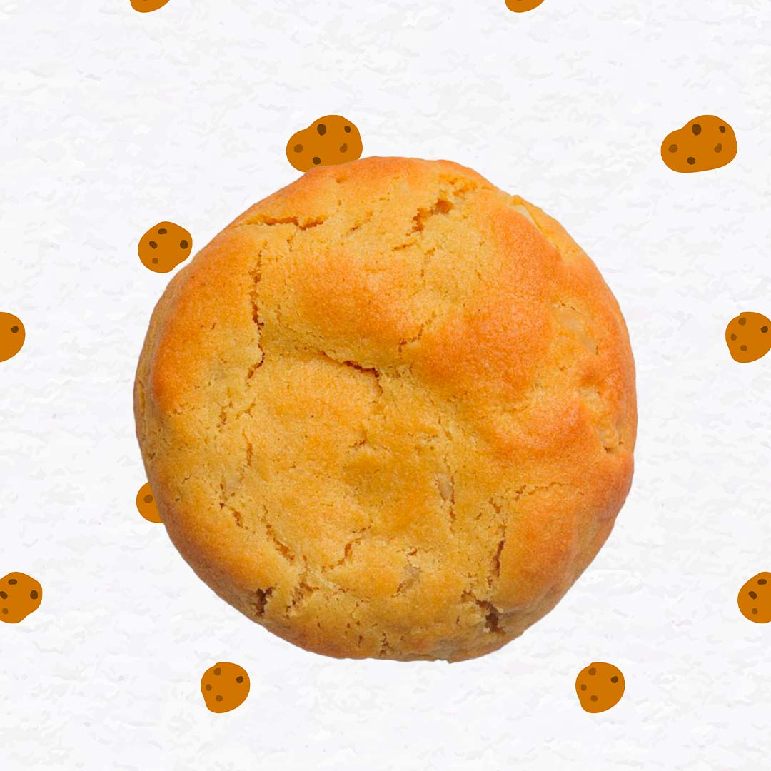 Galleta de textura perfecta, con trozos crujientes de macadamia y un centro derretido de chocolate blanco, la combinación clásica de dulzura y crunch.