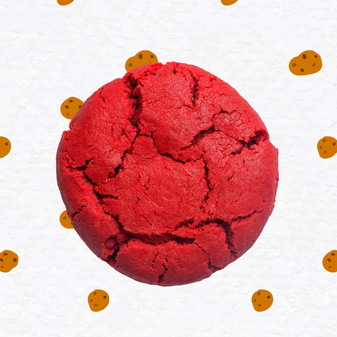 Lujosa galleta estilo red velvet, rellena de un suave y tentador frosting de queso crema, su color vibrante y sabor intenso la hacen una opción premium.
