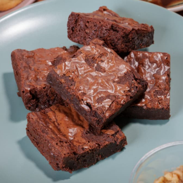 Brownie melcochudo con sabor a chocolate intenso, elaborado chocolate real semiamargo al 43 por ciento, húmedo, profundo y simplemente irresistible.