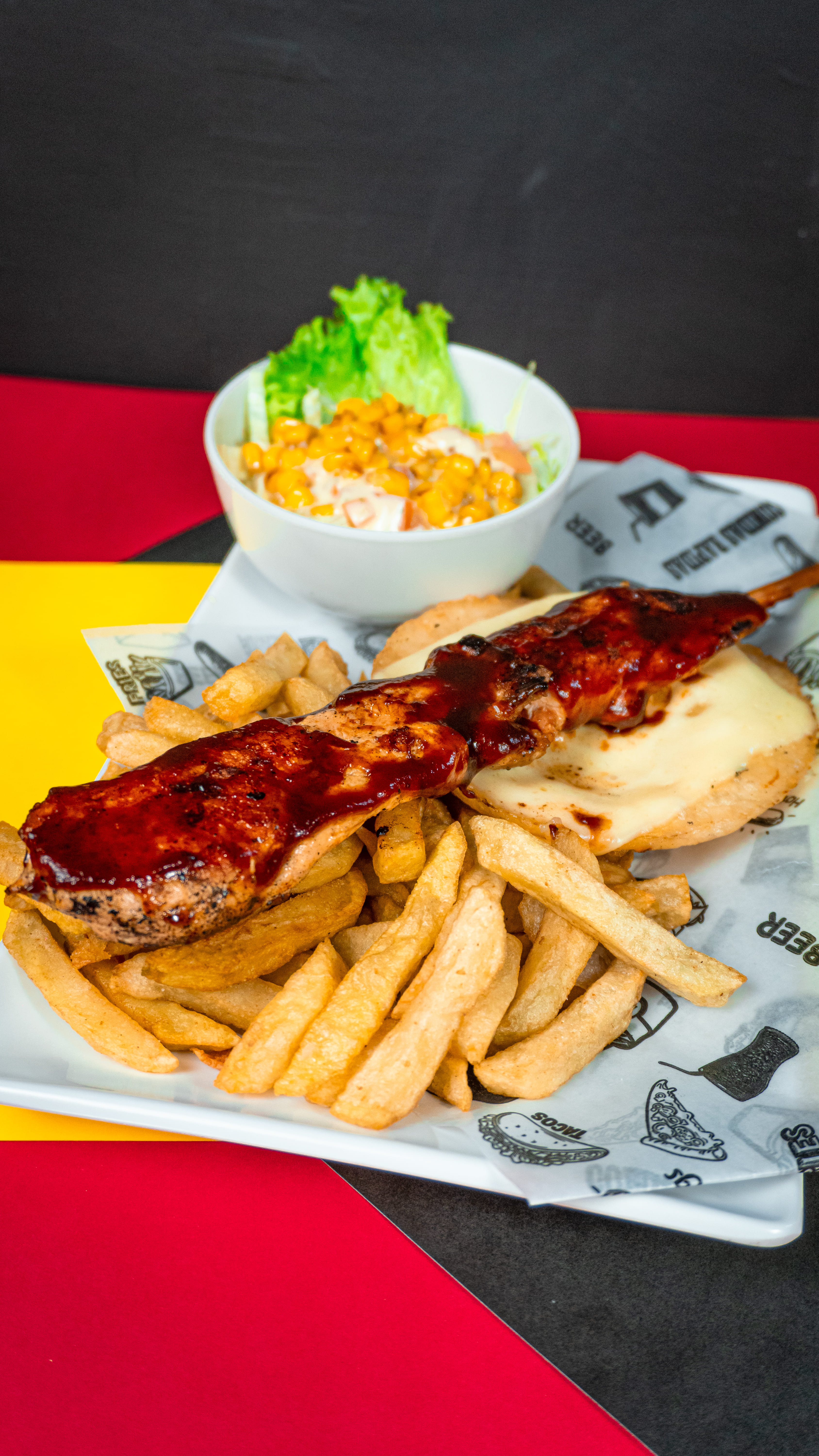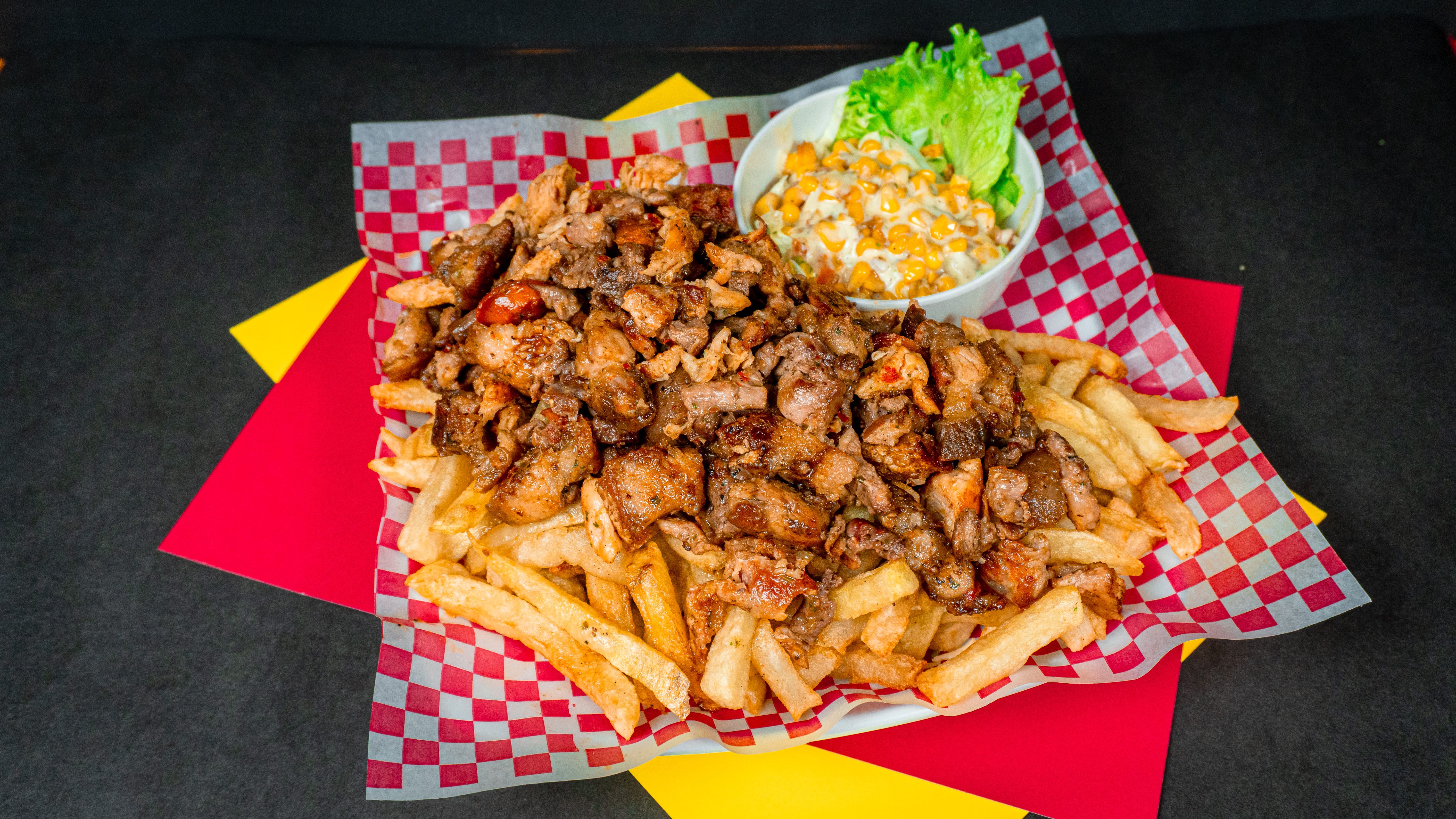 240 g de papas a la francesa doradas al punto, acompañadas de pollo jugoso, salchichas tradicionales, maicitos crocantes, fresco pico de gallo, huevo de codorniz y una selección de salsas a elección. Una mezcla de sabores explosiva, hecha para los que lo quieren todo.