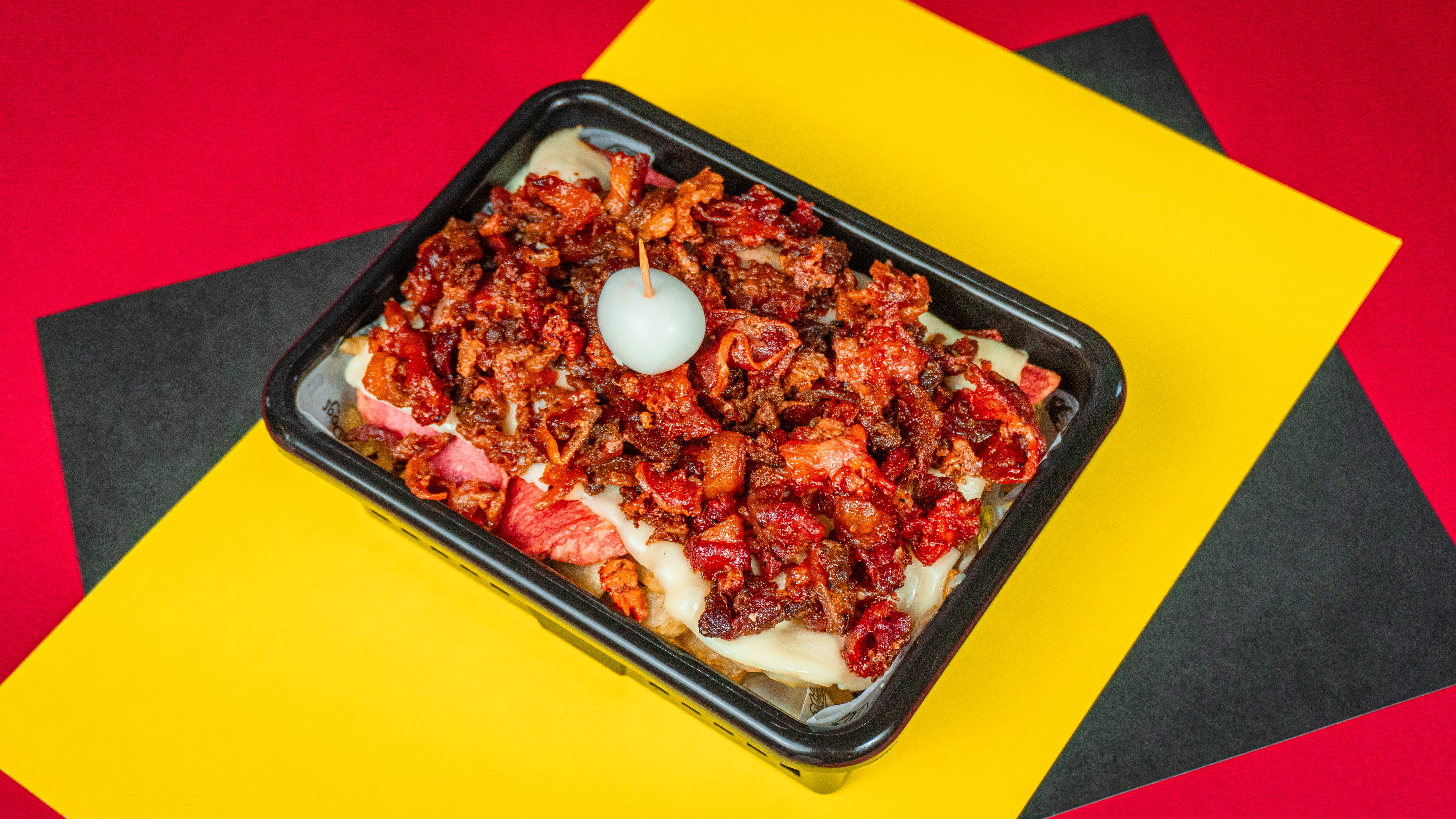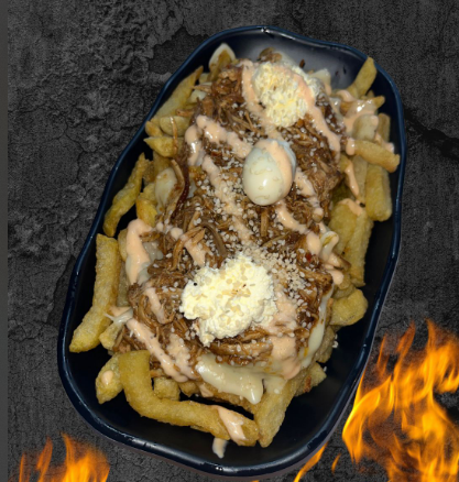 240 g de papas a la francesa doradas y crujientes, cubiertas con queso mozzarella derretido, jugoso pulled pork, un toque suave de queso crema, huevo de codorniz y salsas a elección para rematar con tu estilo. Un festín cargado de sabor.