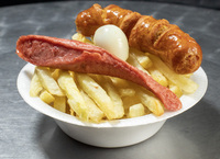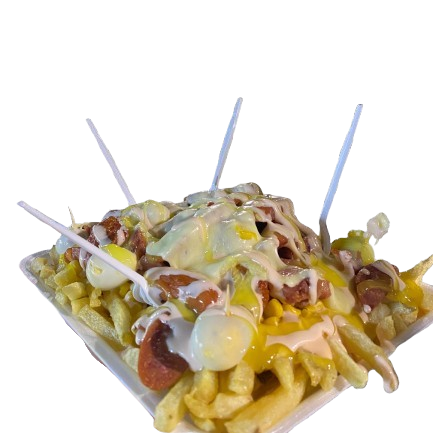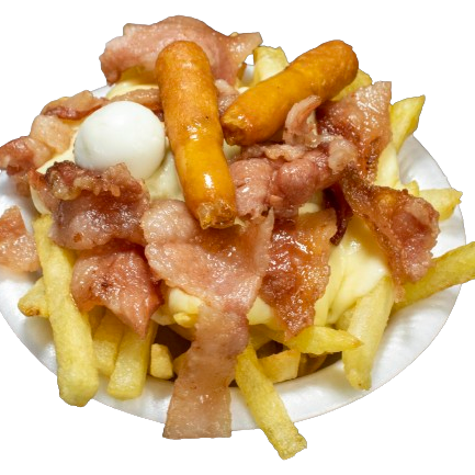 Papas, 2 chorizos, queso, tocineta, 1 huevo.