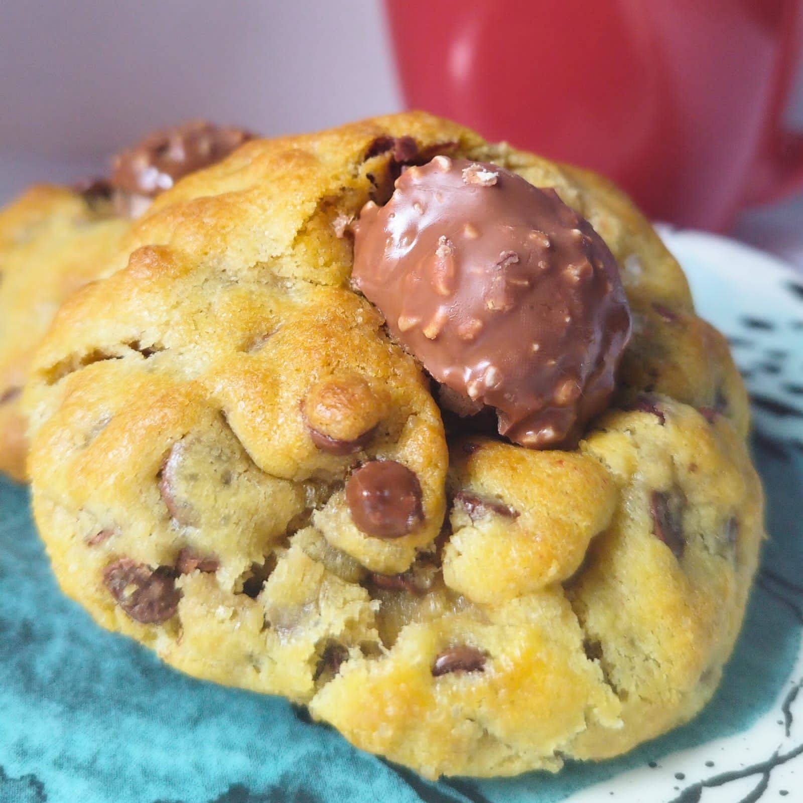Deliciosa masa de Gookies relleno de Nutella y un chocolate Ferrero 100 gr