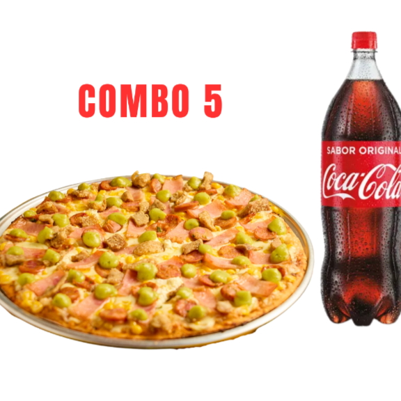 1 pizzas de 8 porciones c/u y 3 ingredientes + gaseosas 1.5.
