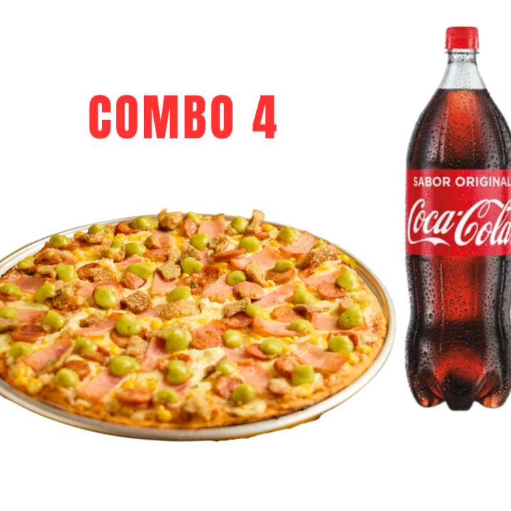 1 pizzas de 10 porciones c/u y 3 ingredientes + gaseosas 1.5 lts.