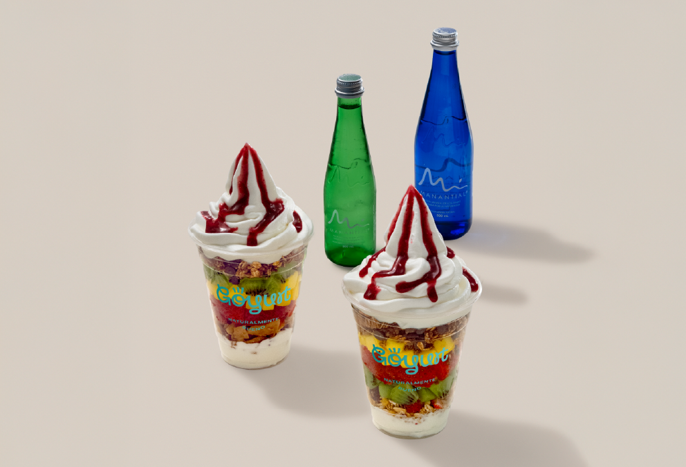 Dos Go Parfait, de cinco toppings y una salsa a elección c/u. Incluye dos botellas con agua.