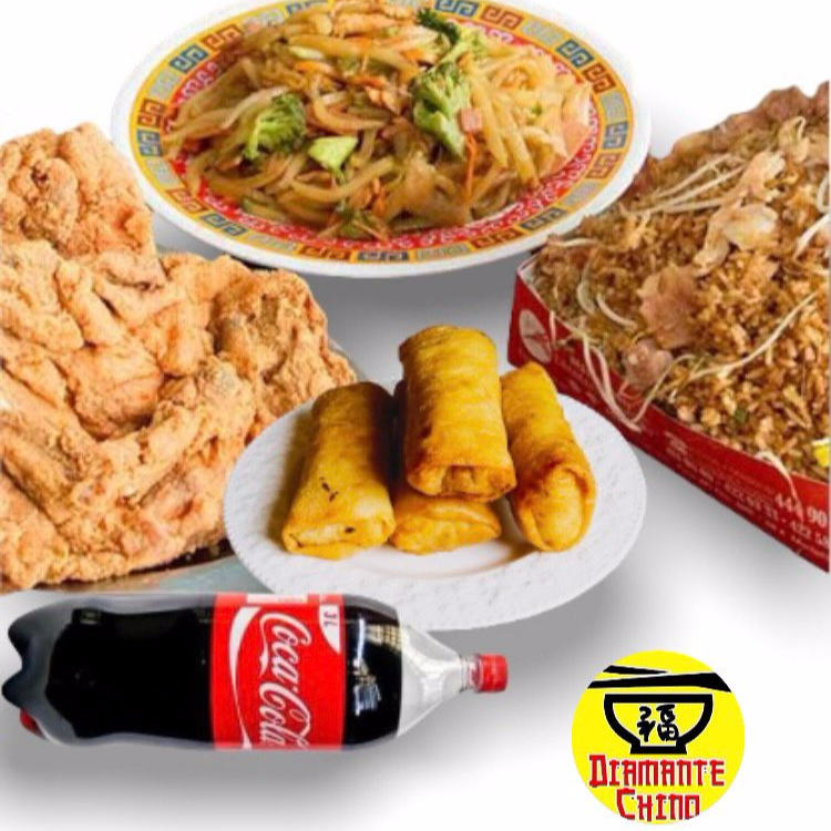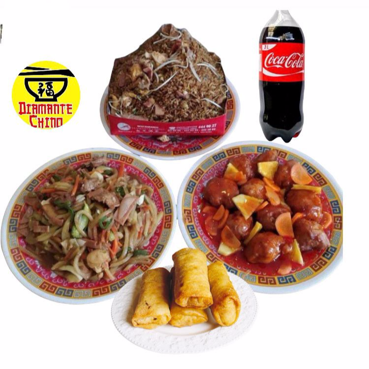 🎈CAJA GRANDE DE ARROZ + CHOPSUEY + 1 POLLO + 4 LUMPIAS + MEGA 3L🎈