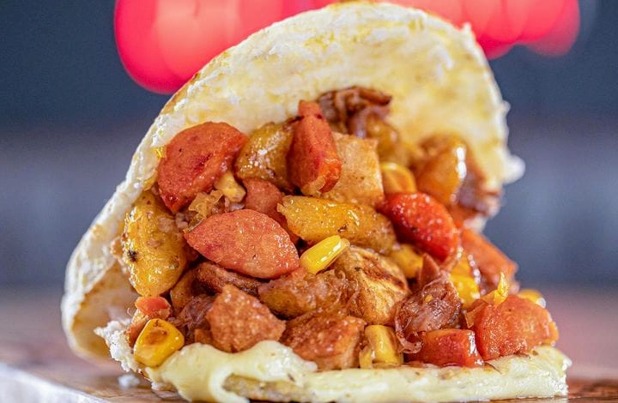 Tortilla de maiz al grill con queso de mano artesanal y racion de cochino frito y mantequilla