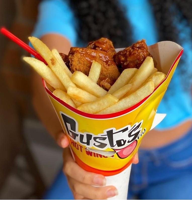 Cinco alitas o nuggets , papas o nachos, gaseosa.