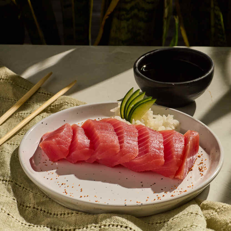 Atun maguro, queso crema y aguacate. Finalizado con kanikama spicy ajonjolí y cebollín.