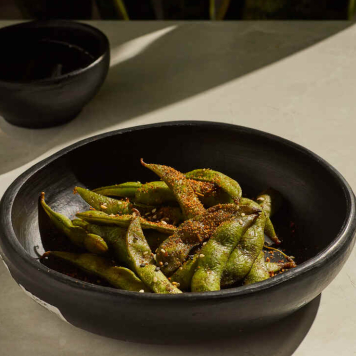 Anillos de calamar encostrados al panco, queso crema y plátano maduro. Finalizado con ajonjolí y cebollín.