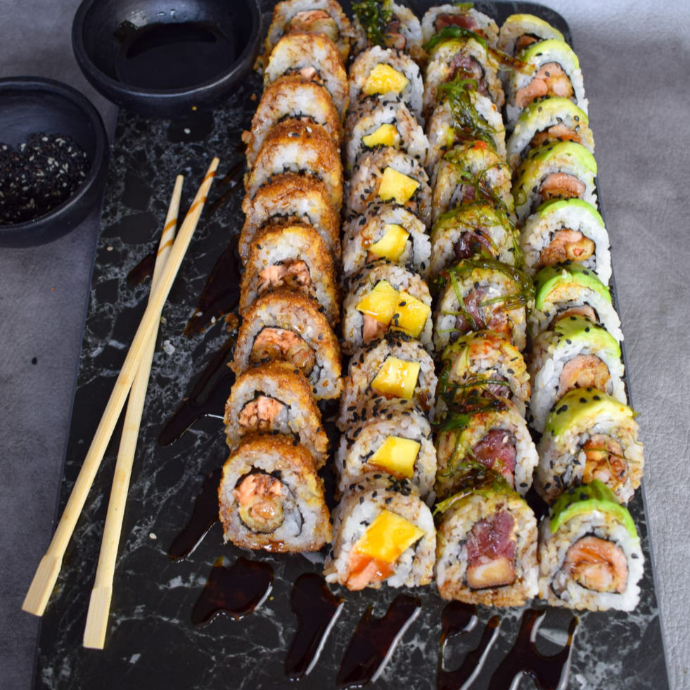 SUKO ROLL (10 BOCADOS)*1 + GOLD ROLL (10 bocados)+ Teriyaki Gratis*1 + TROPICAL ROLL (10 BOCADOS)*1 + HANE'I ROLL (10 bocados) + Teriyaki gratis*1