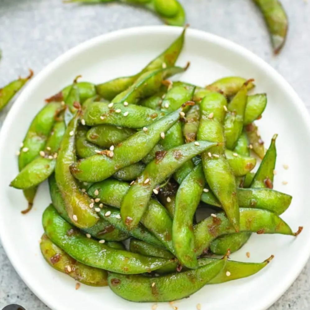 Frijol japones a la plancha, acompañado con salsa soya, sal al gusto.