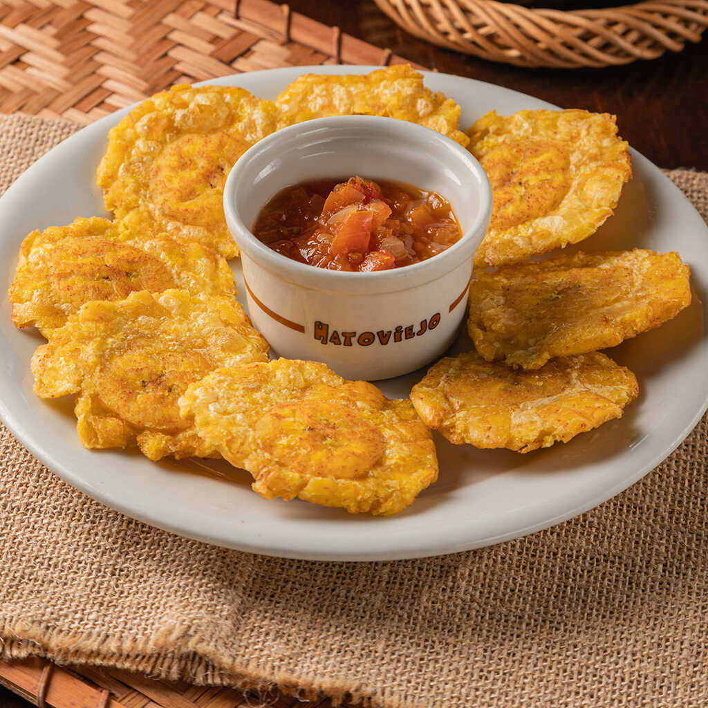 Patacones por 8, con nuestro hogao de la casa.