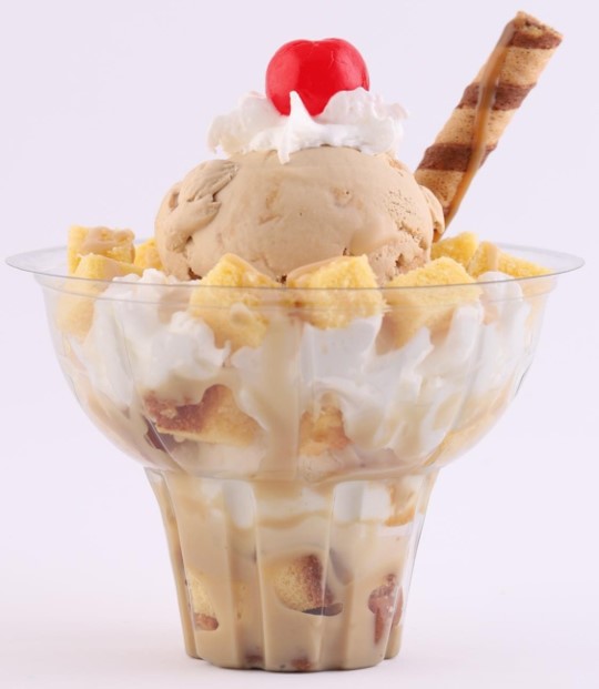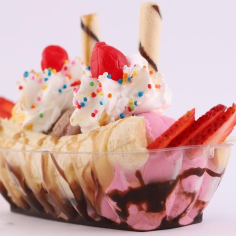 Deliciosa combinación de frutas bañadas en una deliciosa salsa de la casa, 2 sabores de helado, queso, chantilly, cereza, barquillo y leche condensada.