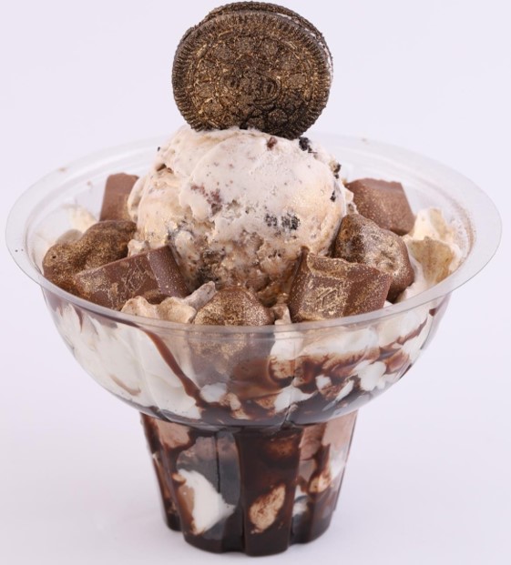 Se dice en el barrio: “no hay mal que 100 años dure, ni pena que el chocolate no cure. Deliciosa y suave copa, donde encontraras grandiosos tesoros como brownie, chococrispí, oreo triturado , 2 bolas de helado, nuggets de milo, chocolatina jet , chantilly, salsa de chocolate hershey´s y galleta oreo.