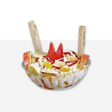 deliciosa combinacion de frutas, kumis, cereza , barquillo y lluvia de chocolate
