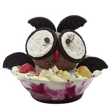 dos sabores de helado , galletas oreo, chips de chocolate, masmelos, salsa y chantilly