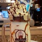 helado de chocolate, leche ,chocolatina de snickers, borde glaseado nutella y mani y triturado,salsa y chantilly