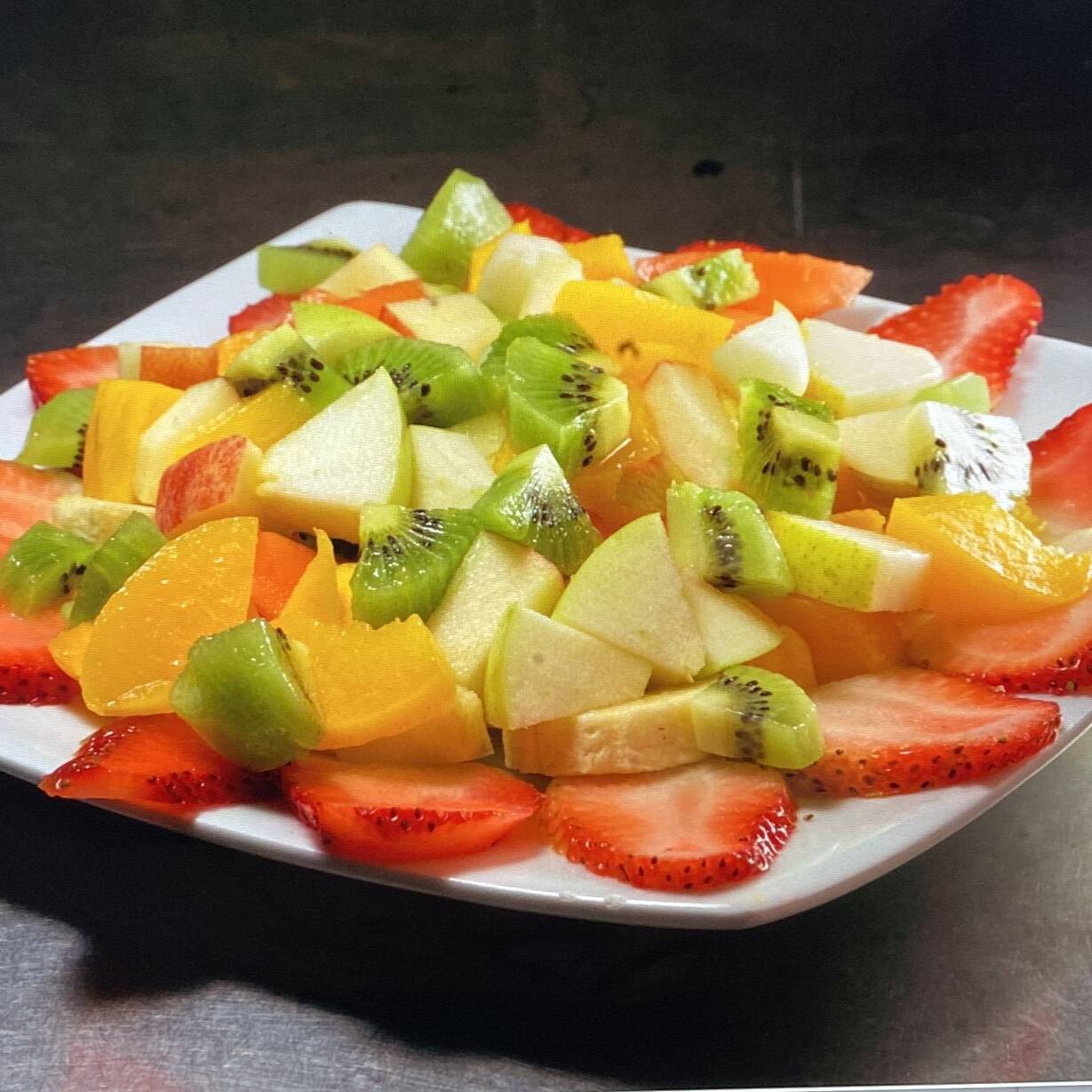 Mezcla de frutas (papaya, pera, durazno, manzana, kiwi, mango y banano).