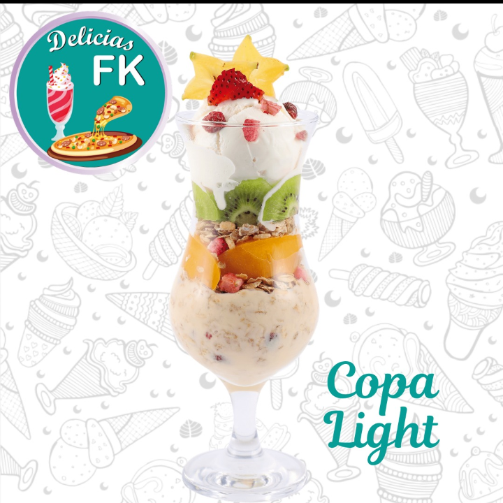 Elado de vainilla light o del sabor que elijas acompañado de granola yogurt durazno fresa y kiwi