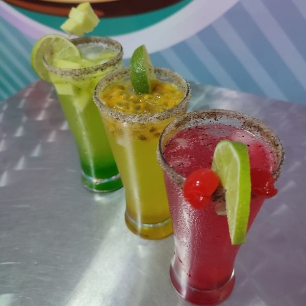 Deliciosa Michelada de Cereza o Maracuya , Soda , Zumo de Limón, fruta y sirop del sabor de la fruta .
