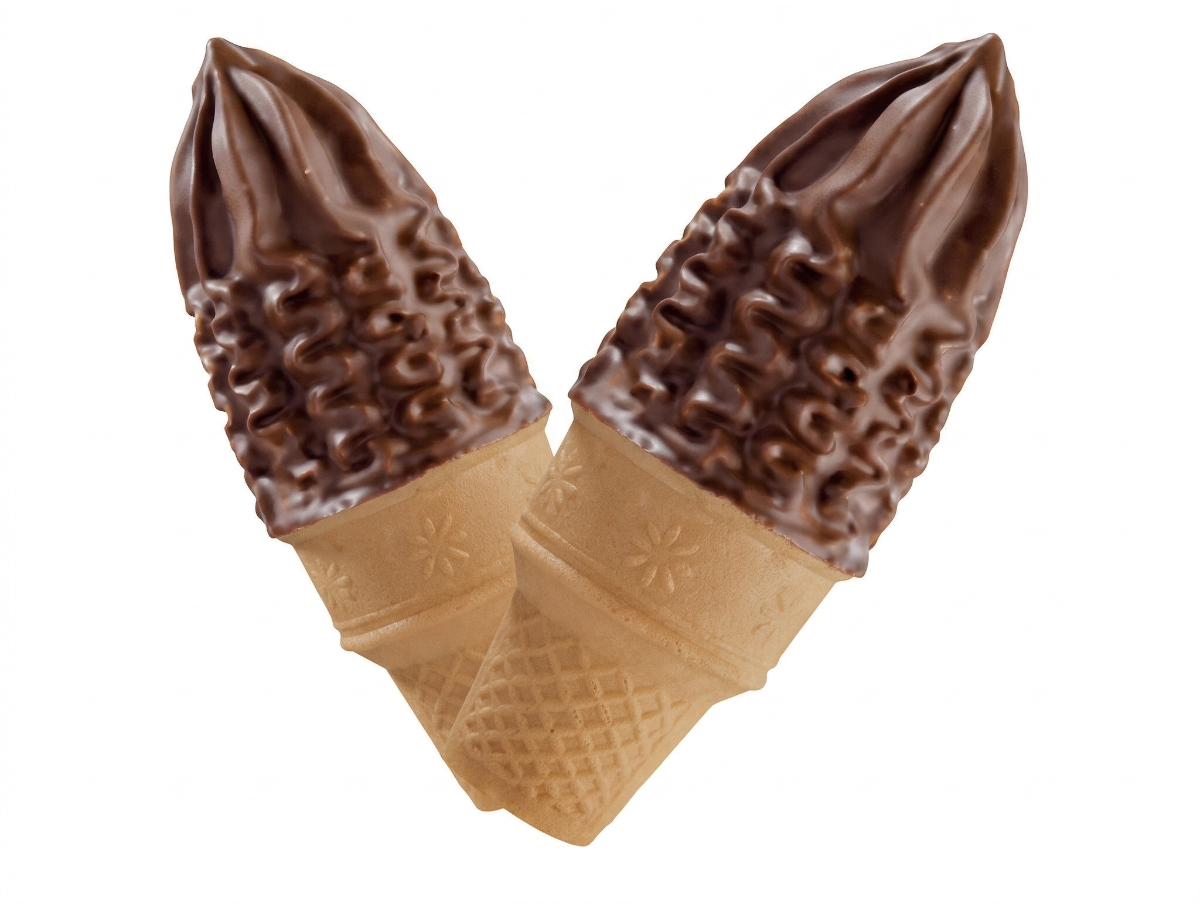 Crujiente cono de galleta relleno de cremoso helado y cubierto con una capa de chocolate premium.
