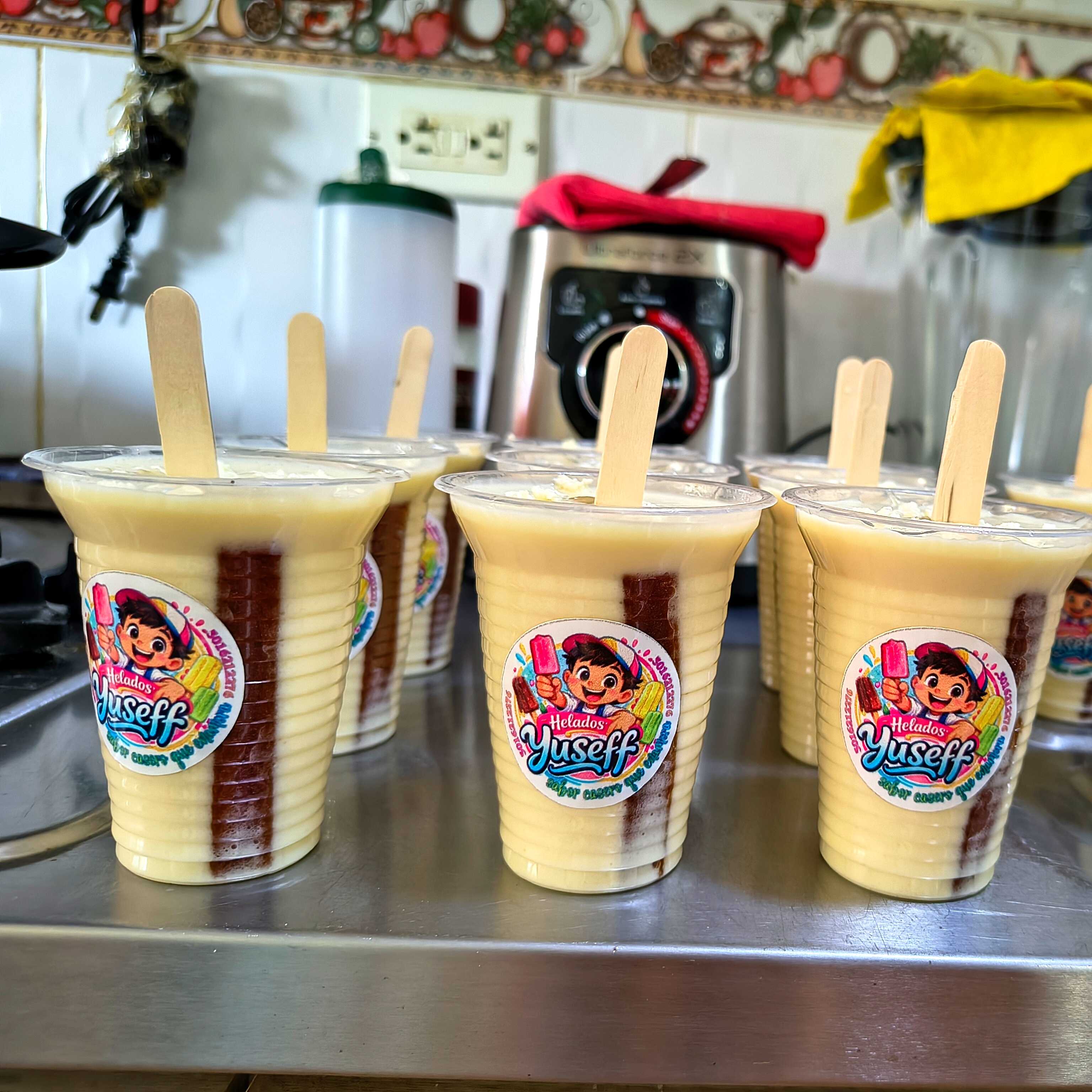 Deliciosa crema casera de bon bon bum con trozos y chicles en su interior.