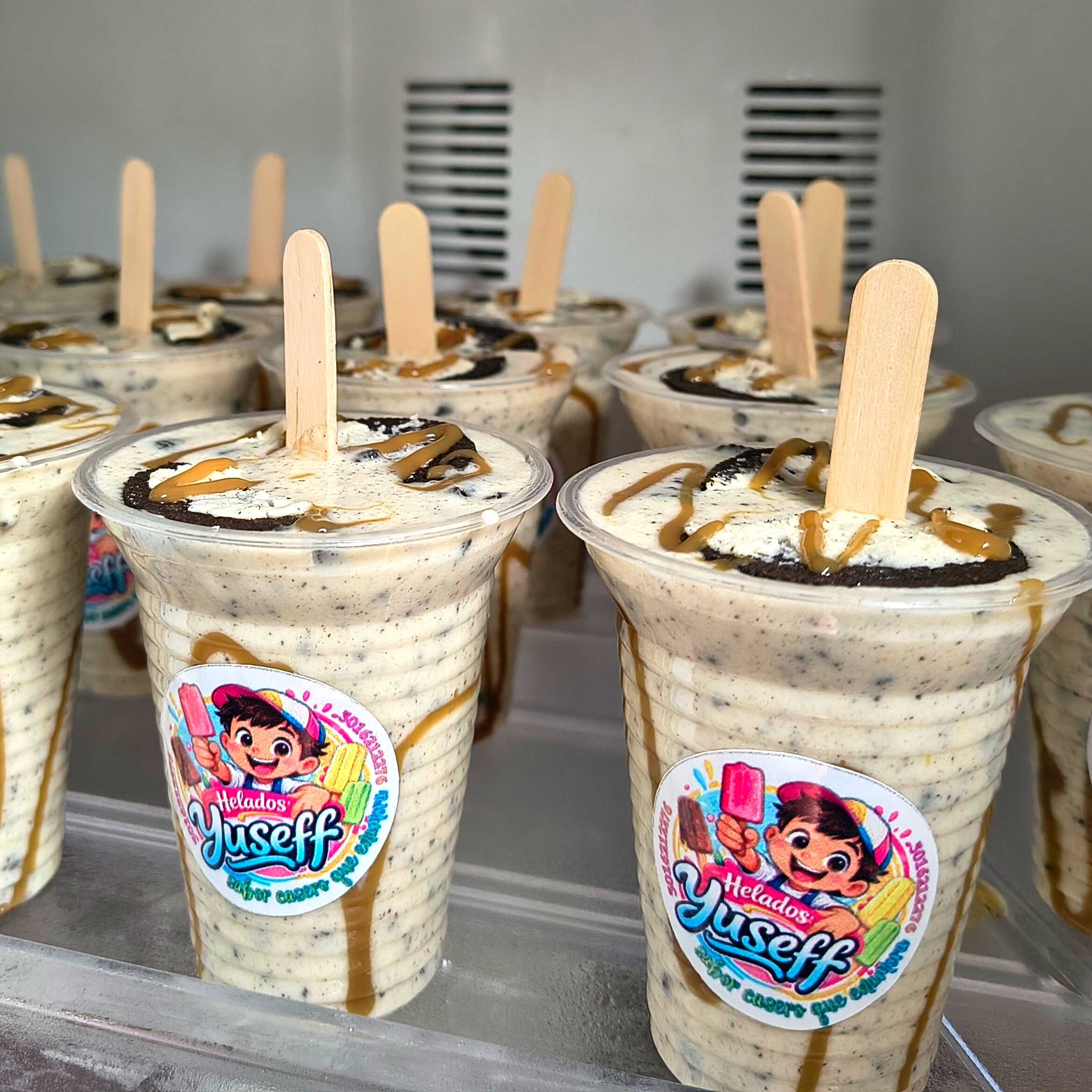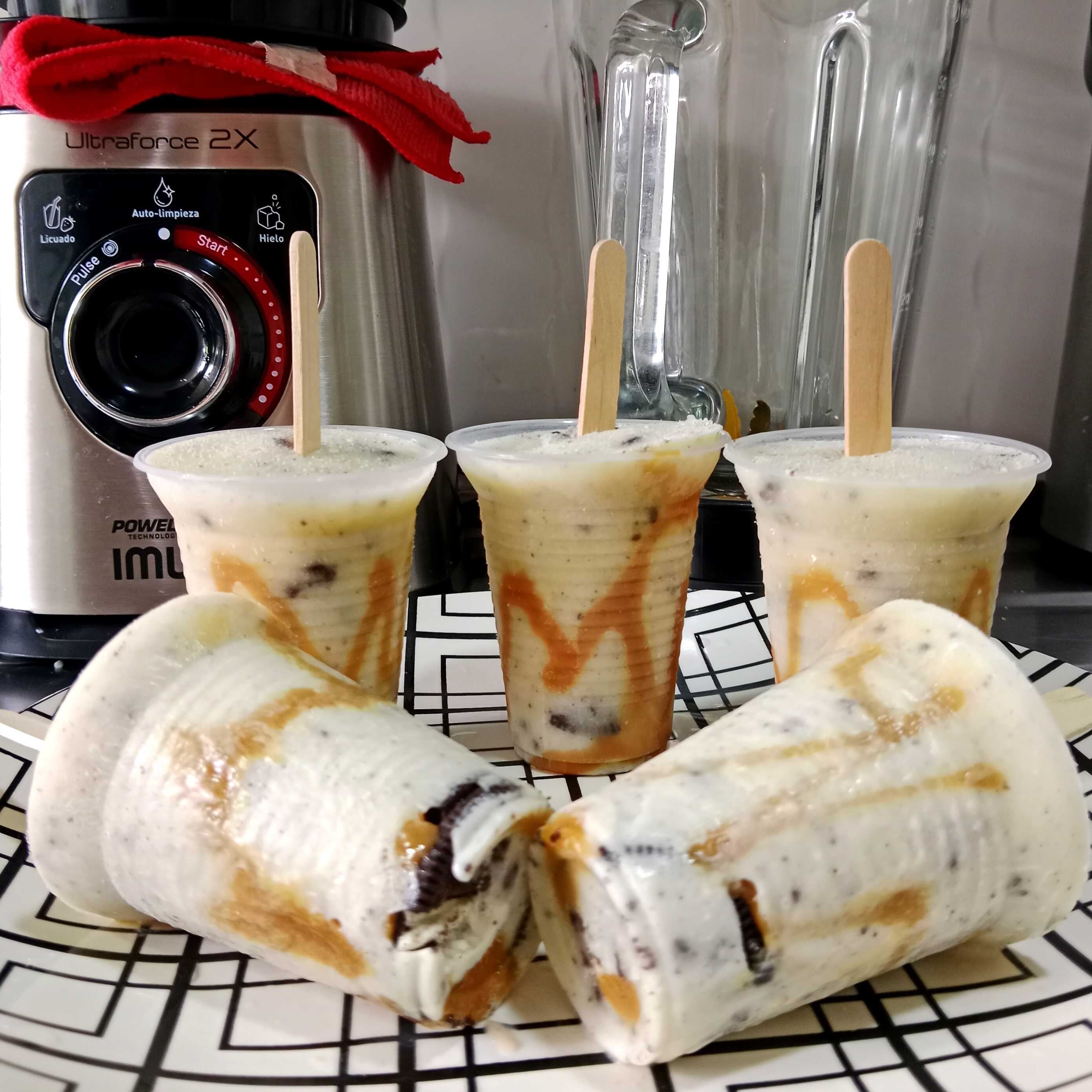Deliciosa crema casera con trozos de galleta oreo en su interior cubierto con arequipe.