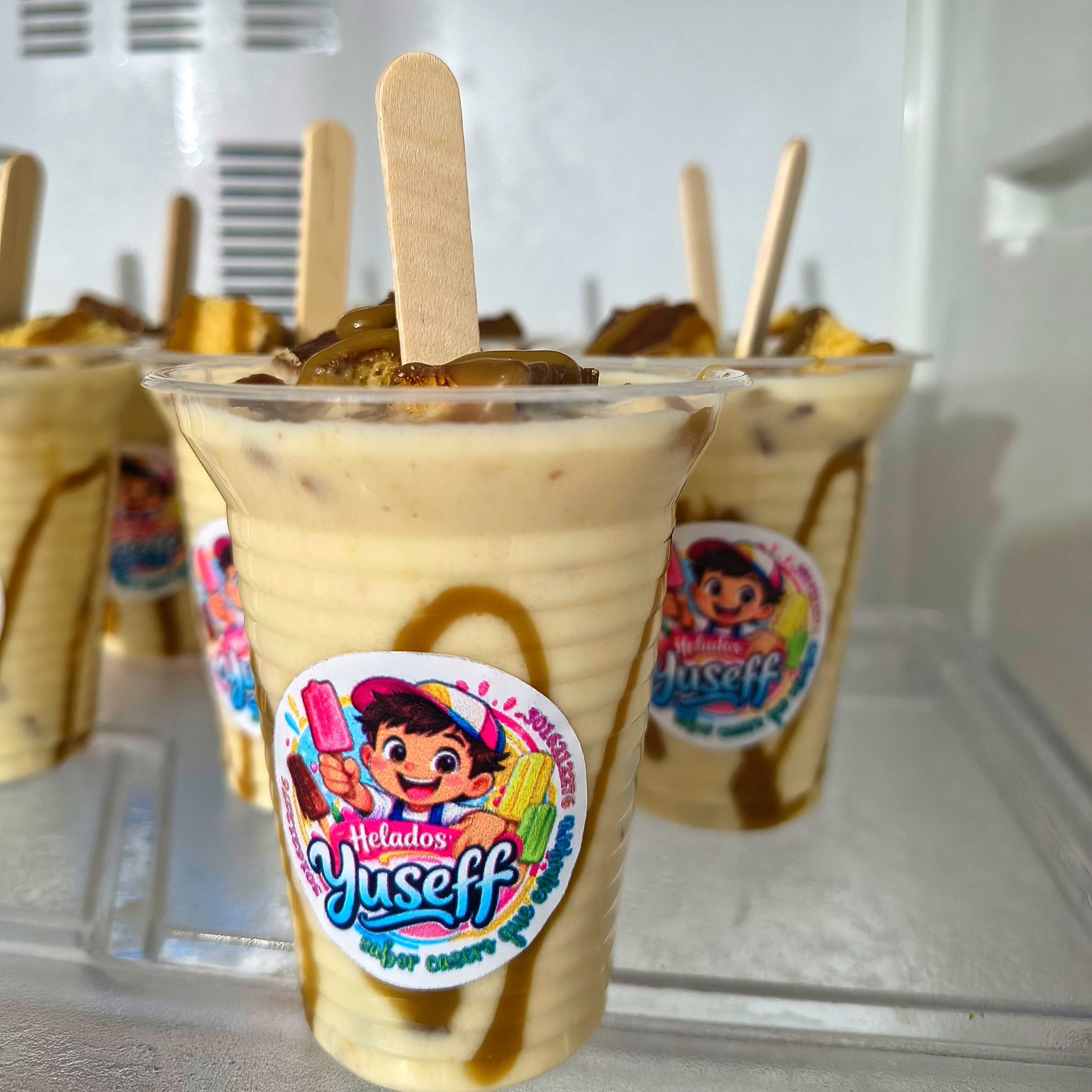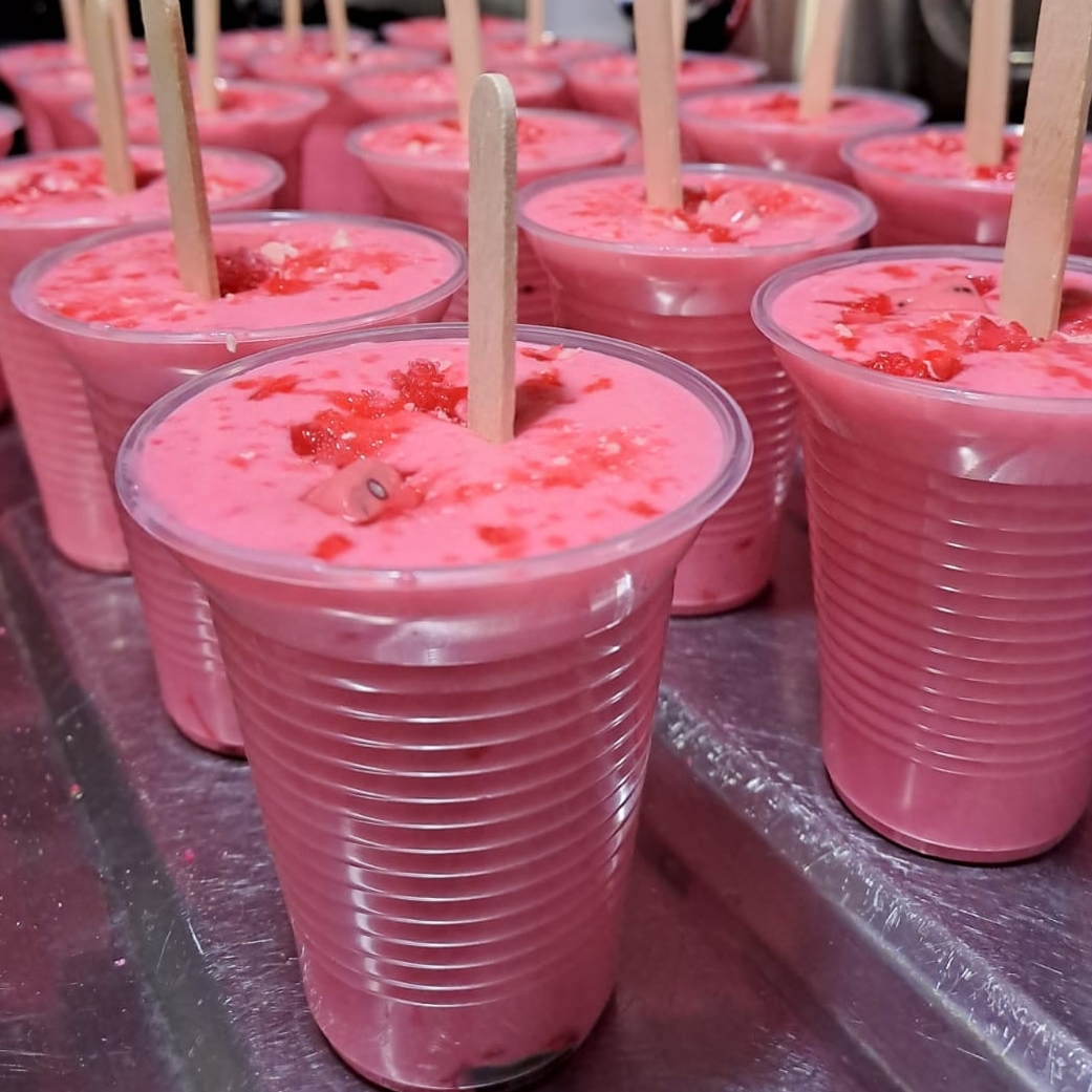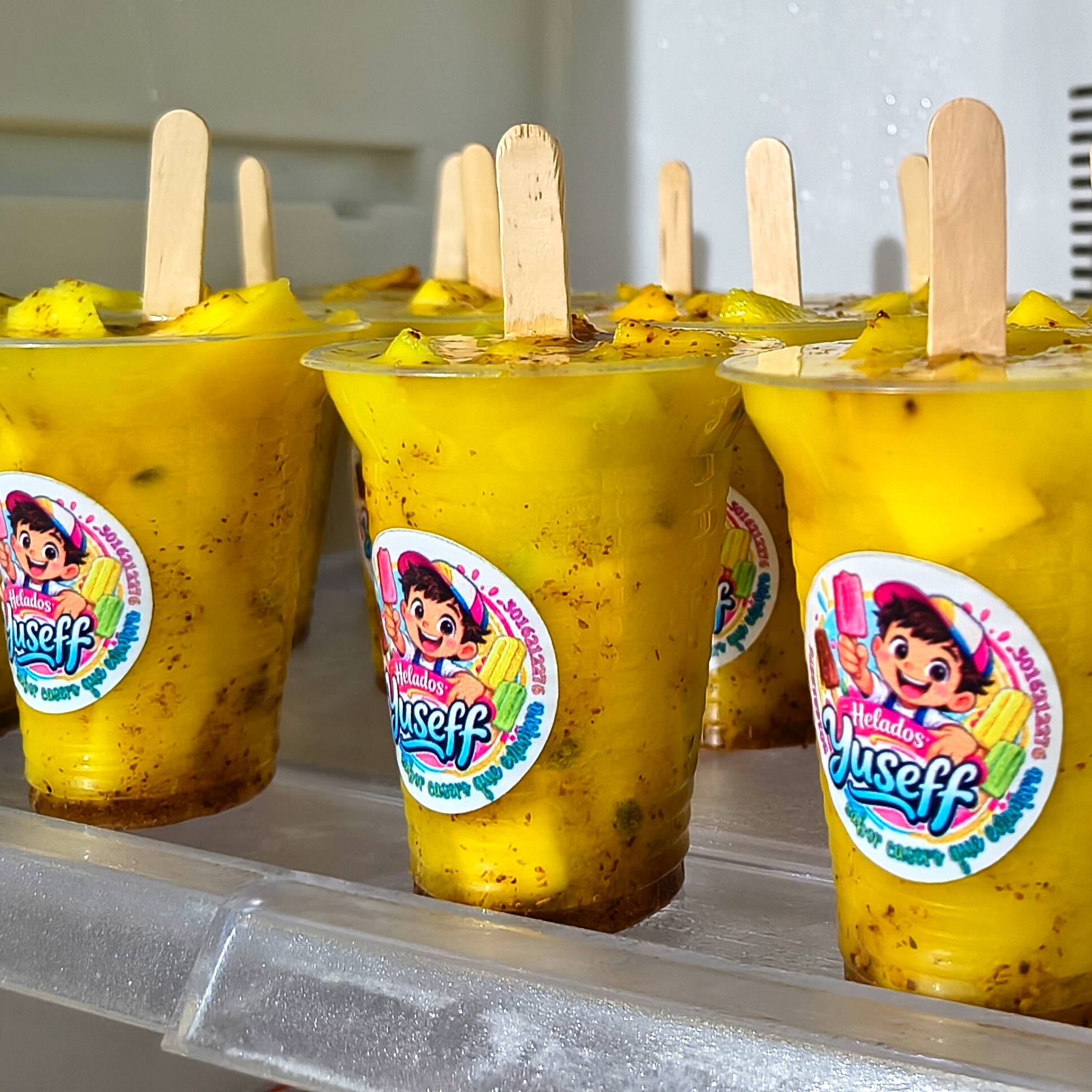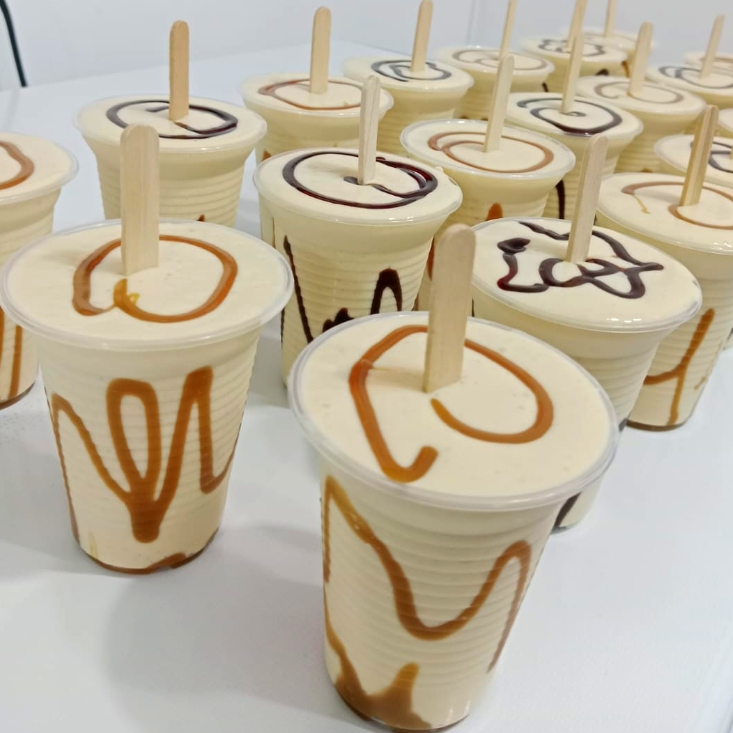 Deliciosa crema casera con trozos de mango y pulpa de maracuyá en su interior.