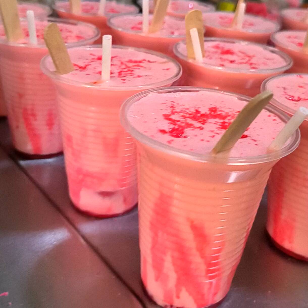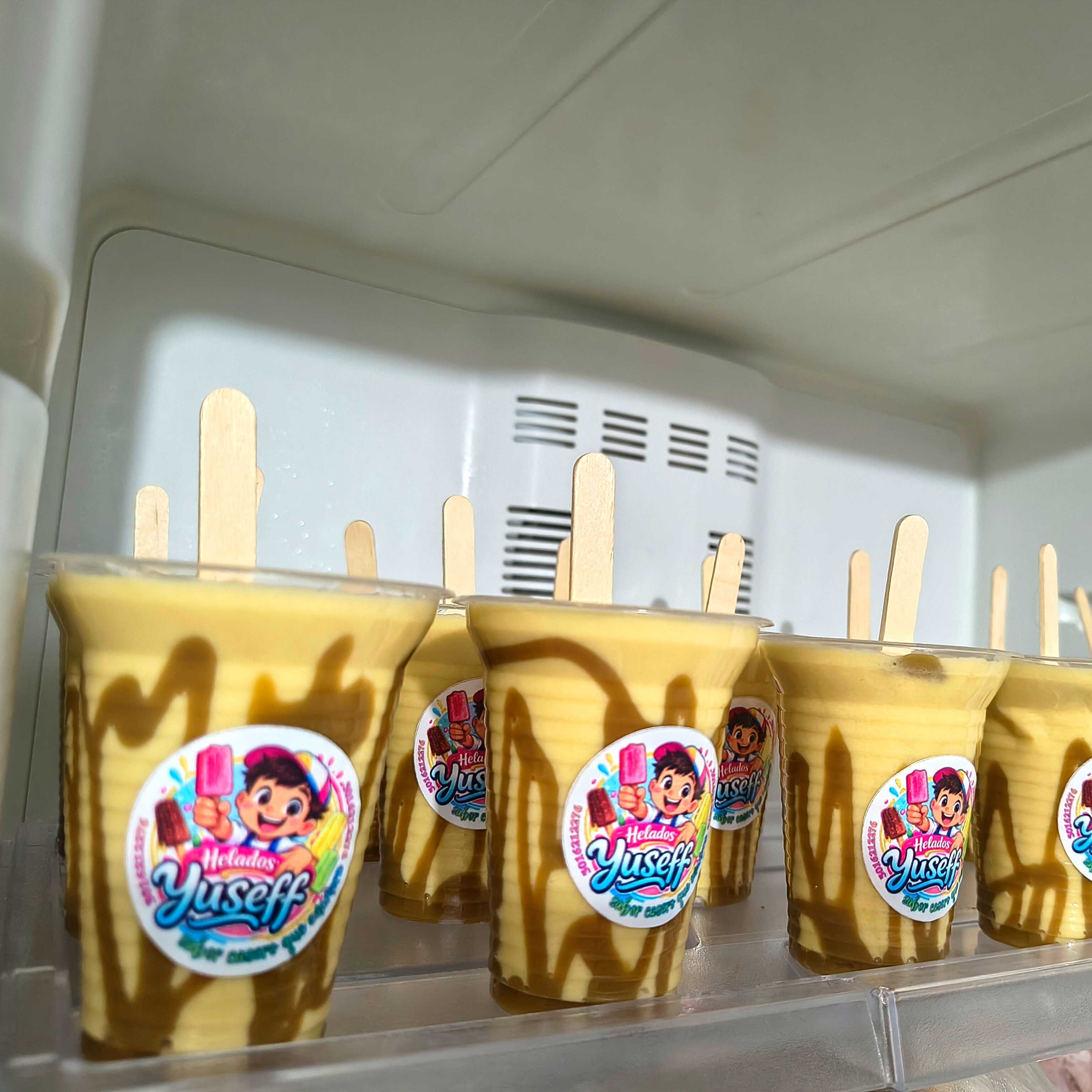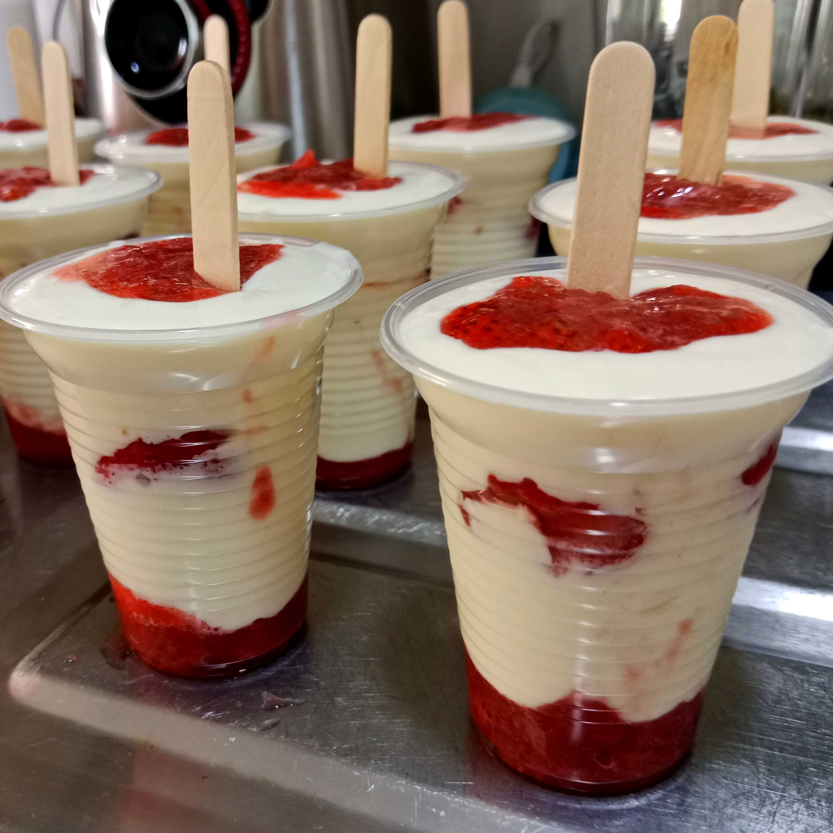 Deliciosa crema casera con trozos de mango y pulpa de maracuyá en su interior.