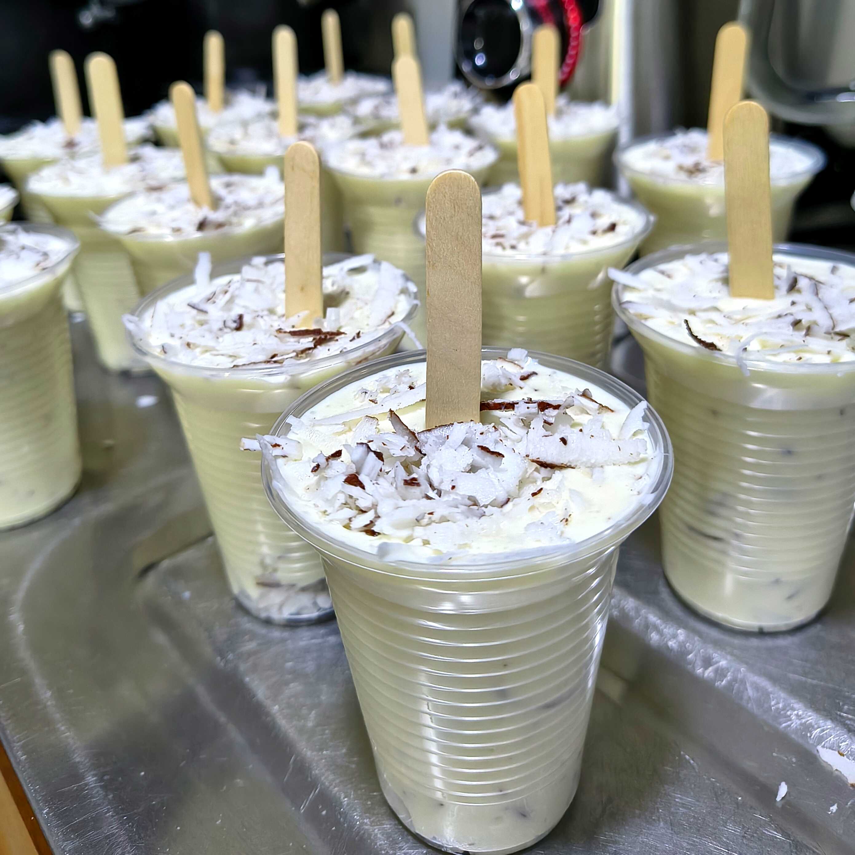 Deliciosa crema casera con trozos de coco en su interior.