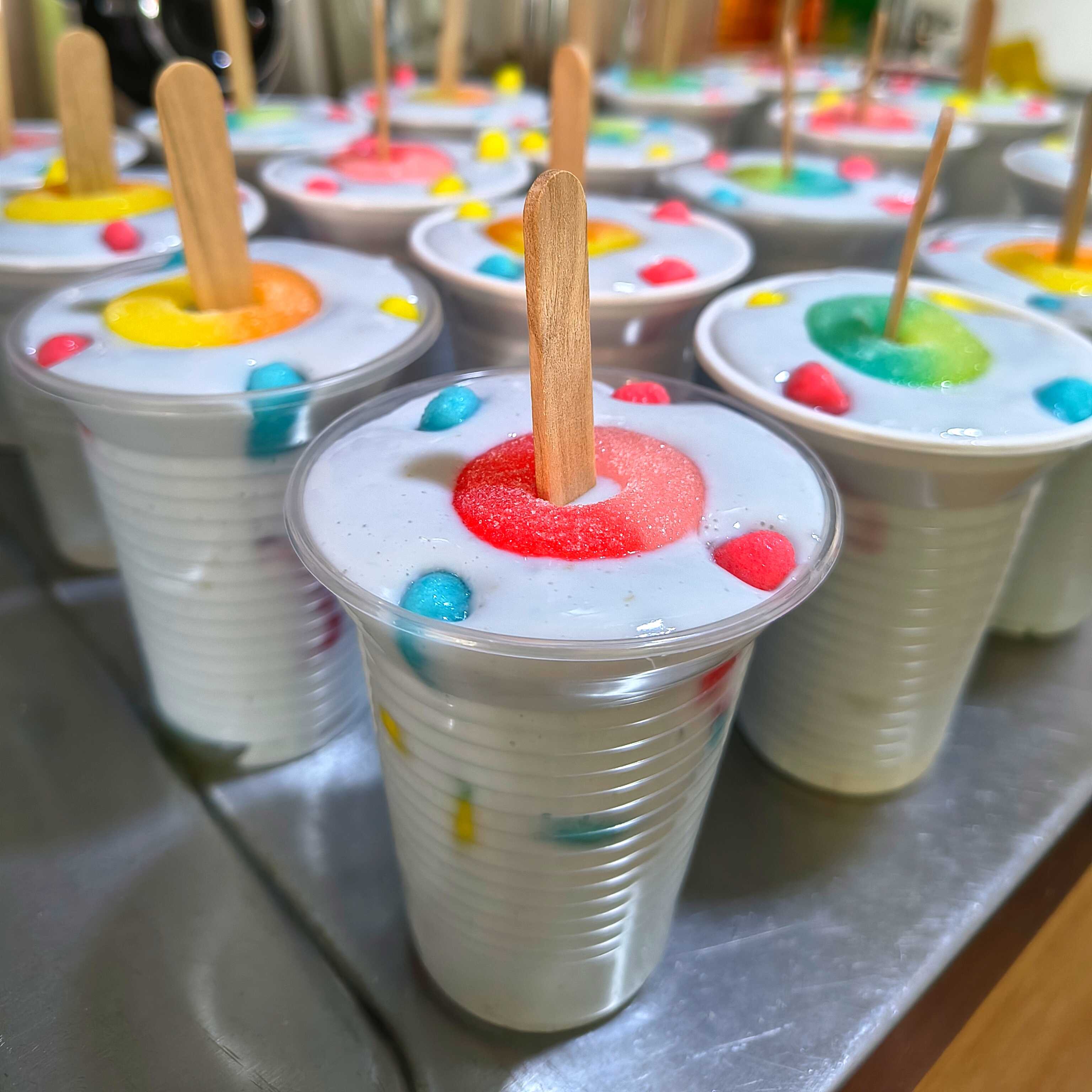 Deliciosa crema Casera con gomitas en su interior.