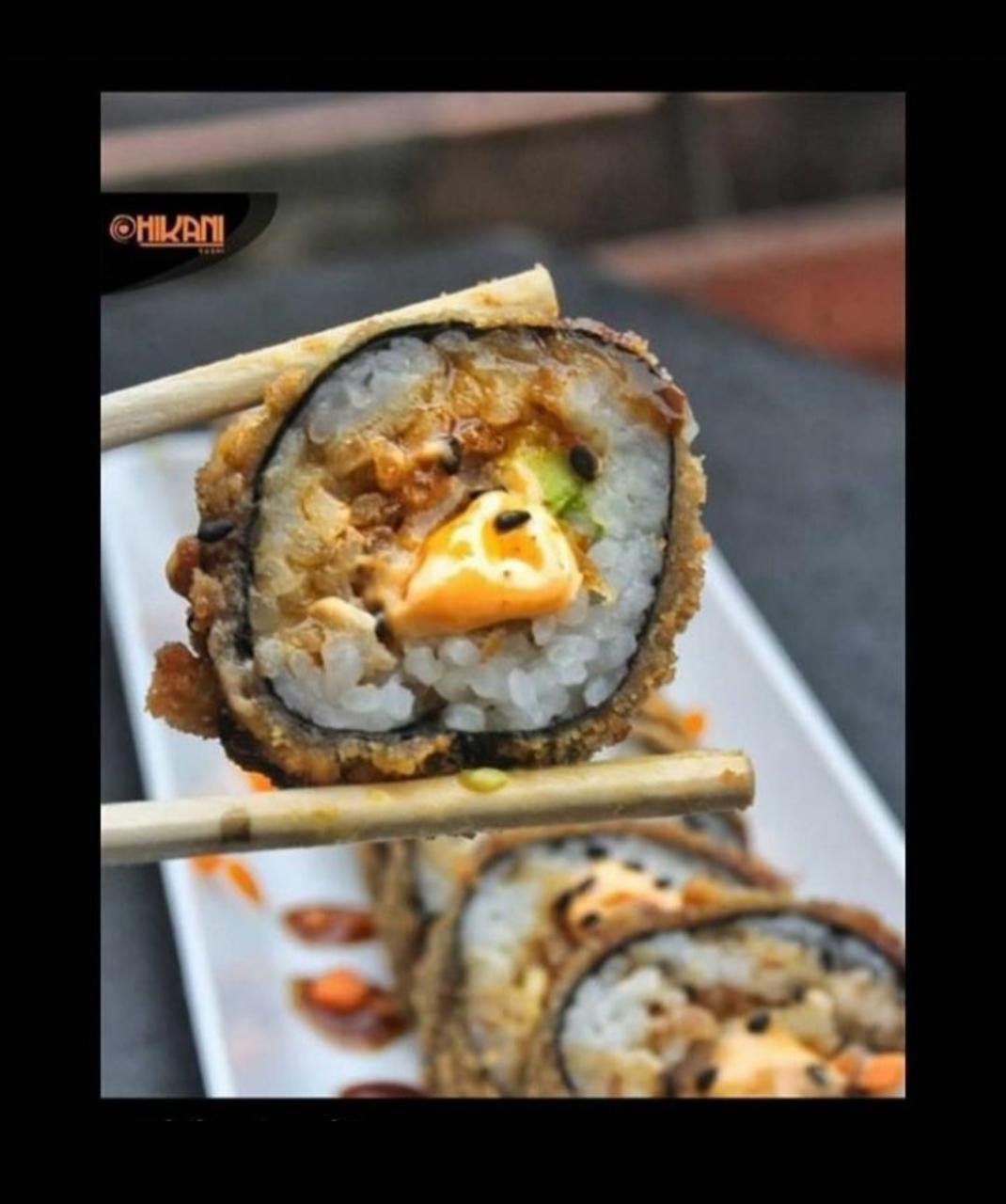 10 piezas roll tempura de palmito de cangrejo crunch, queso crema bañado en salsa tentación.